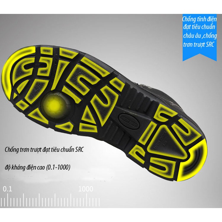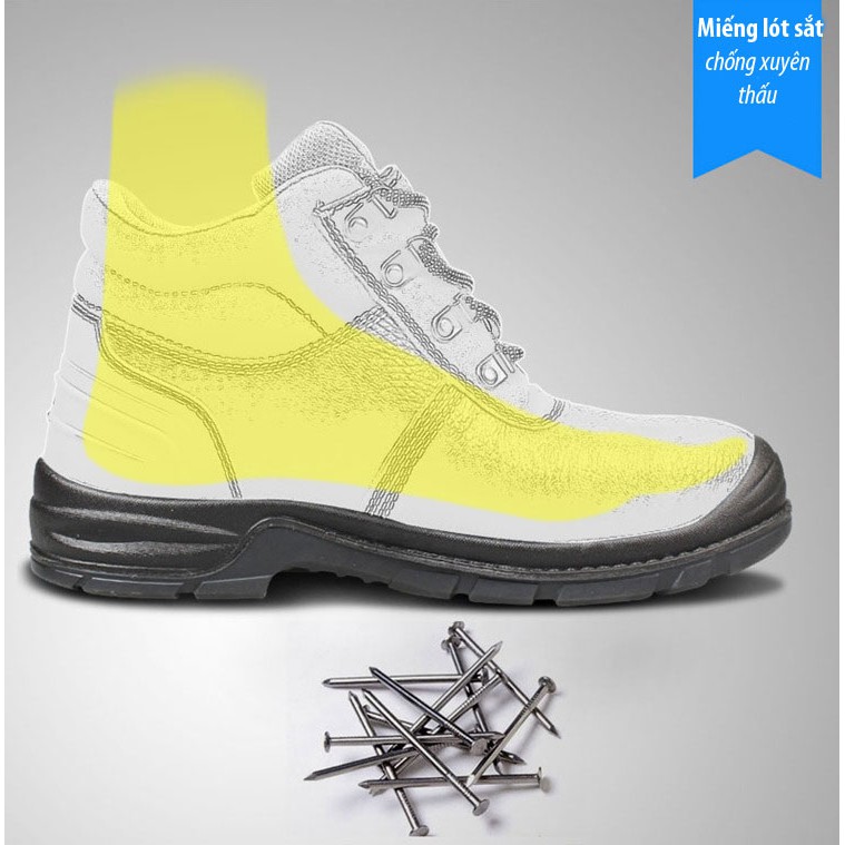 Mũi giày bằng thép chống va đập, lót thép chống đâm xuyên,